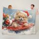 Pomeranian Dog in Sledge Let it Snow Christmas Fleece Blanket
