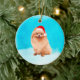 Pomeranian Dog Sitting In Snow Christmas Hat Ceramic Ornament