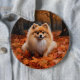 Pomeranian in Autumn Leaves Fall Inspire 6 Cm Round Badge
