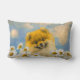 Pomeranian in Daisies Painting - Original Dog Art Lumbar Cushion