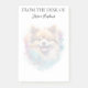 These post-its are awesome! They feature an adorable watercolor Pomeranian and have "From The Desk Of" and your name in a modern script font. They'd be a super cute gift for your Pomeranian loving friends or family.