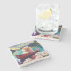 The coasters are gorgeous, a quality feel and heavy weight. They look like a precious archeological find. A rustic stone juxtaposed with a modern floral black and white print. I like the way the print goes slightly imperfect on the cut stone edges giving them a kind-of natural beauty.
