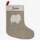 Everyone wants to be included in the seasonal festivities and our fluffy friends are no exception. Treat your poofy family member with a personalised Christmas stocking. White Pomeranian silhouette on faux linen style fabric with personalised text. Visit Jenn’s Doodle World for even more Pomeranian Christmas stockings and dog breed holiday decorations.