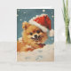 "Capture the festive spirit with our Christmas card cover featuring an adorable Pomeranian donning a cheerful Santa hat. This heartwarming design is sure to bring joy and smiles to your loved ones during the holiday season."