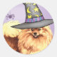 Pomeranian Witch Classic Round Sticker