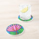 Colourful painting scene of pink water lily by popular artist Lisa Lorenz on a coaster