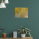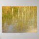 This poster features a lovely pastel impressionistic abstract view of early spring reflections at the pond. White aspen trunks are reflected as is the blue sky. Soft gold, orange, green and brown complete the artistic interpretation.