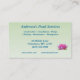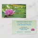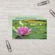 This business card advertises a pond service company which does pond planning, design, construction, maintenance, cleaning and management. It features a lovely pink water lily resting on lily pads. Luminous water reflections glow between the pads of this well-constructed pond. All text can be customised to suit your individual situation.