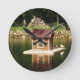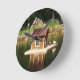 Pond with bird house round clock