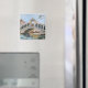 This colourful magnet features a landscape painting of the famous Rialto Bridge and the symbol and protector of Venice, Italy, the winged lion of St. Mark.