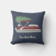 Create some custom holiday decor for your pontoon boat or home or a personalised Christmas gift for pontoon boat owners. This throw pillow features an illustration of a pontoon boat in red and white with a Christmas tree strapped to the top set against a navy blue background. It's ready to be personalised with a boat name or your recipient's name in white script lettering.