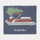 Pontoon Boat with Christmas Tree on Top Fleece Bla Blanket