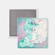 An original painting in acrylics entitled: "Pony Elysium I". This precious white Pony, with bright turquoise curly mane, is a magical pony. Soft pastel colours and tiny flowers surround her as she dreams. She wears a pretty hat just like her little faerie friends. She smells a magick flower which lets off a powdery sweet fragrance.