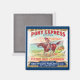 This is a vintage advertisement for Pony Express pitted red cherries. The blue background can be changed to other colours.