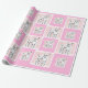 Wrapping paper on a roll with a pink snooty poodle pattern. Stylised poodles with pom poms and pouts.