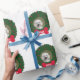 Your dog takes centre stage on this adorable holiday wrapping paper. A green Christmas wreath with red berries surrounds his photo (or leave current photo of a Poodle) and a red bone highlights his name or year. Perfect for dog owners, anyone who works with dogs or the dog lover. Woof!