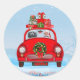 Poodle Dog In Car With Santa Claus Classic Round Sticker