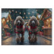 This festive design captures the joyful spirit of the holiday season, featuring an adorable dogs.Nestled in a winter wonderland, complete with a decorated Christmas tree, and beautifully wrapped presents. Snowflakes gently fall, adding a magical touch to the scene, while the vibrant colours of the holiday decorations create a warm and cheerful atmosphere.