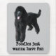 The original Poodles were water dogs used for retrieving. To this day, their conformation and the texture and pattern of their coats reflect the purposes for which they were bred. Miniatures and Toys have been bred down from the larger Poodles and they exhibit the same general characteristics. The Poodle is an active, intelligent, ruggedly-built dog which is at the same time elegant and refined. Well-bred Poodles in all three varieties have steady, calm nerves, hardy constitutions and they can be easily trained. A Poodle is a "person" and he expects to be treated as one. Each one is a character and for that reason they make wonderful companions. This is a perfect gift for you or any Poodle lover that you know.