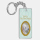 This Poodle photo keychain showcases the phrase “Forever My Best Friend” above your dog’s portrait in an antique-style frame on a soft mint diamond background.