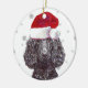Round ceramic hanging decorations featuring your favorite breed! A gorgeous black miniature Poodle sporting a lovely festive and fluffy Santa Hat in a festive scene, perfect for hanging on the Christmas tree! At Amber Marie Studio, no breed is left behind. If you don't see your breed featured in my shop, let me know as I have squillions of designs!