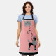 This cute, personalized apron is made to look like the classic poodle skirts of the 1950s. A pretty French poodle dog in gray and black is on the left side, its black leash winding upward. The background is a vintage pink shade with light pink polka dots. The top and bottom have a border of black and faux (printed) white lace. The design also includes a central gray banner with room for several lines of text. (DESIGN TIP: Use the easy template, or customize further to change fonts / resize or delete the banner and text to order without it). This midcentury modern design is perfect for anyone who loves rock 'n' roll, American nostalgia, and sock hops. Advertise your dog grooming business or customize with your name / your kitchen name. Add any text you like!