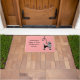 This cute, modern French poodle doormat is derived from the classic poodle skirts of the 1950s. The pretty black poodle dog has grey pompons of fur with polka dots and a black stencil-style leash. It all rests on a vintage pink background with a light pink polka-dotted effect.