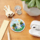 It's a happy day in the country with a smiling sun, pretty flowers, a dove flying overhead and a white toy or miniature Poodle sitting in the soft emerald green grass as the soft breezes blow.