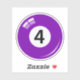 Purple number four pool/billiard ball sticker. All balls 1-15 plus cue ball are available on stickers and other products.