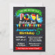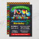 Birthday pool party invitation on a primary colour scheme, suitable for any age. Add your own wording into the template, to more customisation (font colour, font style, background), click on personalise, scroll down and click on link "click to customise further":