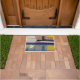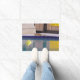 The original photograph by ZoeSPEAK on this Door Mat shows an iguana relaxing along the edge of a swimming pool in the Florida Keys. An edging of cobalt blue tile separates the scene from its reflection in the aqua water, where a sign on the bamboo fence makes a wide yellow band across the ripples in the pool. There is a yellow postit note saying "Welcome". These are set to personalise, or delete if you prefer.