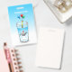 Pool party birthday badge with a cute illustration of a little whale. The whale is wearing a red and white striped party hat and has started the birthday party which takes place in a filled water glass.