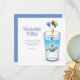 Thank You Card with a cute illustration of a little whale. The whale is wearing a red and white striped party hat and has started the birthday party which takes place in a filled water glass.