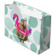 Pool Party Cute Capybara With Pink Flamingo Float Large Gift Bag