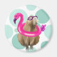 Pool Party Cute Capybara With Pink Flamingo Float Magnet