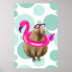 Pool Party Cute Capybara With Pink Flamingo Float Poster