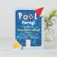 A summer pool party invite! It depicts floats as the o's in Pool, umbrellas, a diving board, a light blue floor pattern, and photographed water. This invite is perfect for both boys and girls of all ages!