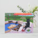 Whimsy and funny Labrador Retriever Painting invite. Remove sample text and insert your info. Labrador Painting painted by Naomi Ochiai. Black Labrador, Chocolate Labrador, Yellow Labrador are all painted in the picture. Happy Pool Party! Black Lab is checking his/her emails via Paw Pad. Chocolate Lab is having hamburgers! Yellow Lab enjoys floating on the water meanwhile other three Labrador dogs are having fun. You can add text as you like.