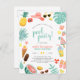 Save on envelopes with postcard invitations! This summer-themed design features a border of summer elements and your party information in modern script typography. The border has a pineapple, camera, sun hat, shades, tropical leaves, flowers, ice lollies, lemonade, flip flops, beach balls, lemons, doughnuts, watermelon, ice cream, and more! Click on "Personalise this template" to change the wording. If you want to change fonts, sizes, colours, or placement, scroll down to "Click to customise further" and use our design tool! Visit our store for more designs!