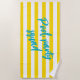 Pool Party Squad Cute Yellow and White Striped Beach Towel