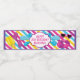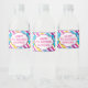 Cool pool party water bottle label for a girl's birthday party. Fun way to decorate for your daughter's summer birthday party, water droplets and other water fun around a pool are depicted on this water bottle wrapper.