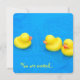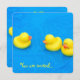 Yellow rubber ducks floating in swimming pool for pool party invitation