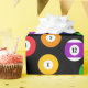 The perfect gift wrap for billiard, 8 ball and pool player birthdays. It features colourful pool balls patterned over black