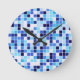 Pool Tiles, Blue Mosaic Tiles, Geometric Pattern Round Clock