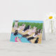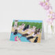 Poolside Party Labradors Painting Card for Labrador fans. Whimsy and funny Pool Party Labrador Retriever Painting painted by Naomi Ochiai. Black Labrador, Chocolate Labrador, Yellow Labrador dogs are all painted in the picture. Deckchairs, floating chair in the pool, playing with balls are familiar view. You can find your Labrador Kid in the painting.