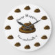 This fun clock says "Poop Happens . . . You can handle it" which can be changed to your own custom text. Each hour on this clock is marked with a nice brown poo.