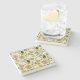 The coasters are gorgeous, a quality feel and heavy weight. They look like a precious archeological find. A rustic stone juxtaposed with a modern floral black and white print. I like the way the print goes slightly imperfect on the cut stone edges giving them a kind-of natural beauty.