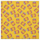 Fun yellow fabric patterned with popart style red cans of baked beans