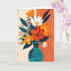 A beautiful and colourful pop-art bouquet of flowers in a blue-green vase, against a split background of beige and orange, creates a striking Mother's Day card.
