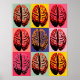 Straight from the sixties and pop art. Black outline of a brain within rectangles of bright yellow, hot pink , pink and green